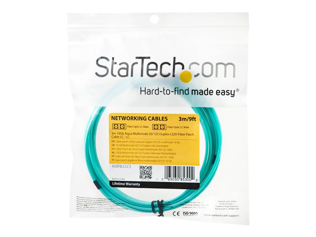 10 Gb Aqua - Multimode Duplex 50/125 - LSZH - LC/LC - OM3 - LC to LC Fiber Patch Cable - Patch-kabel - LC multiläge (hane) till LC multiläge (hane) - 3 m - 3 m - fiberoptisk - duplex - 50/125 mikron - OM3 - halogenfri - havsblå - för P/N: J9152AST, MASFP10GBSR, SFP10GBLRMST, SFP10GBSRST, SFP10GSRSST, SFP10GSRXST