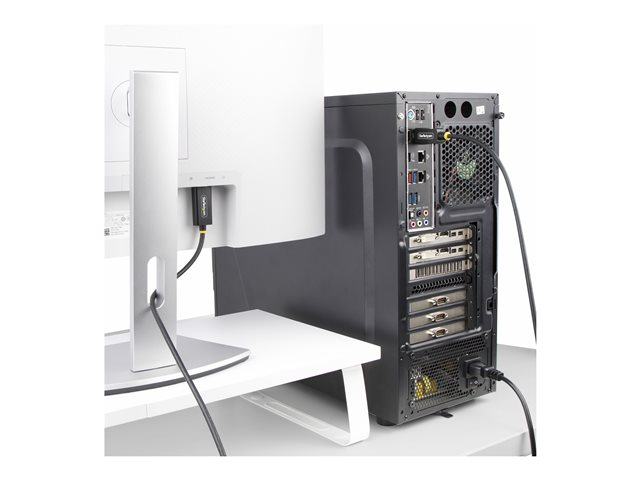 - Integrated video adapter and cable simplifies cable management and reduces clutter