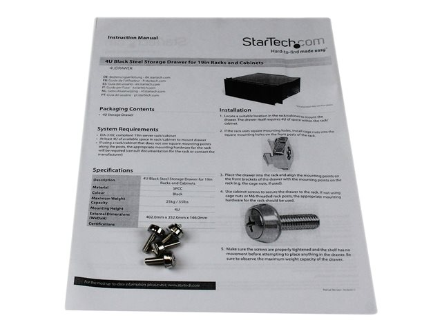 Rack storage drawer - 4U - 4UDRAWER - Racklåda - 4U - för P/N: CABSCRWS1224, RK2537BKM, RK3236BKF, RK4236BKB, RK4242BK24, RK4242BK30, RKQMCAB12V2